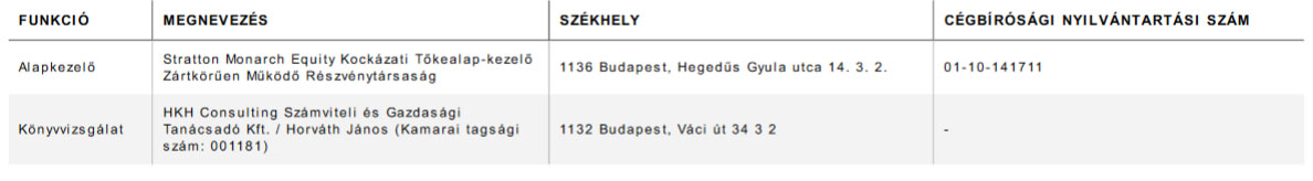 BEFEKTETÉSI ALAP ÁLTALÁNOS ADATAI